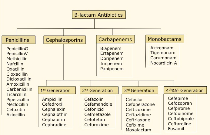 β-lactam antibiotics classified as follows: